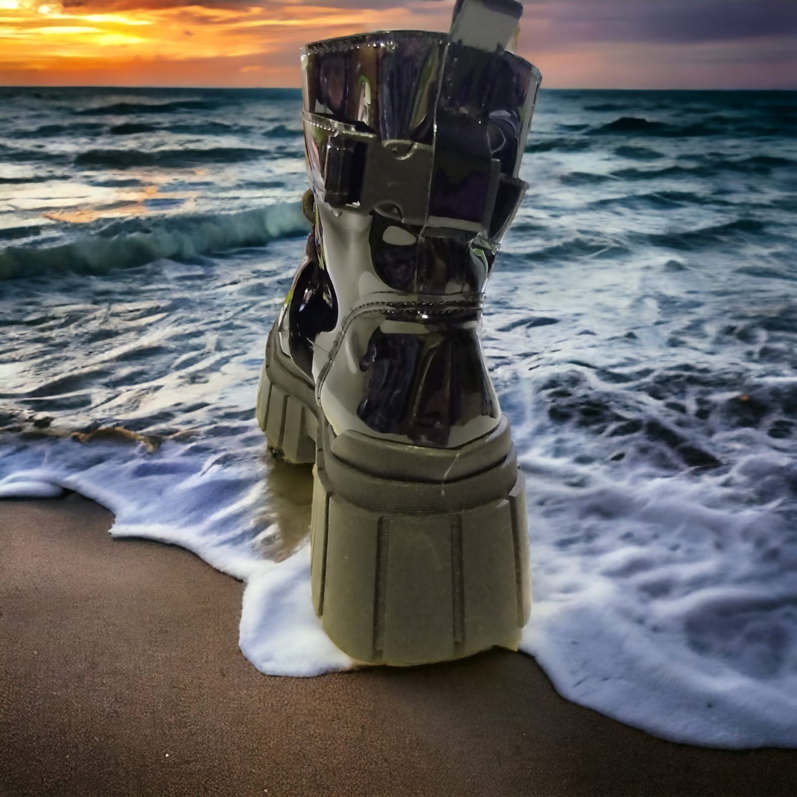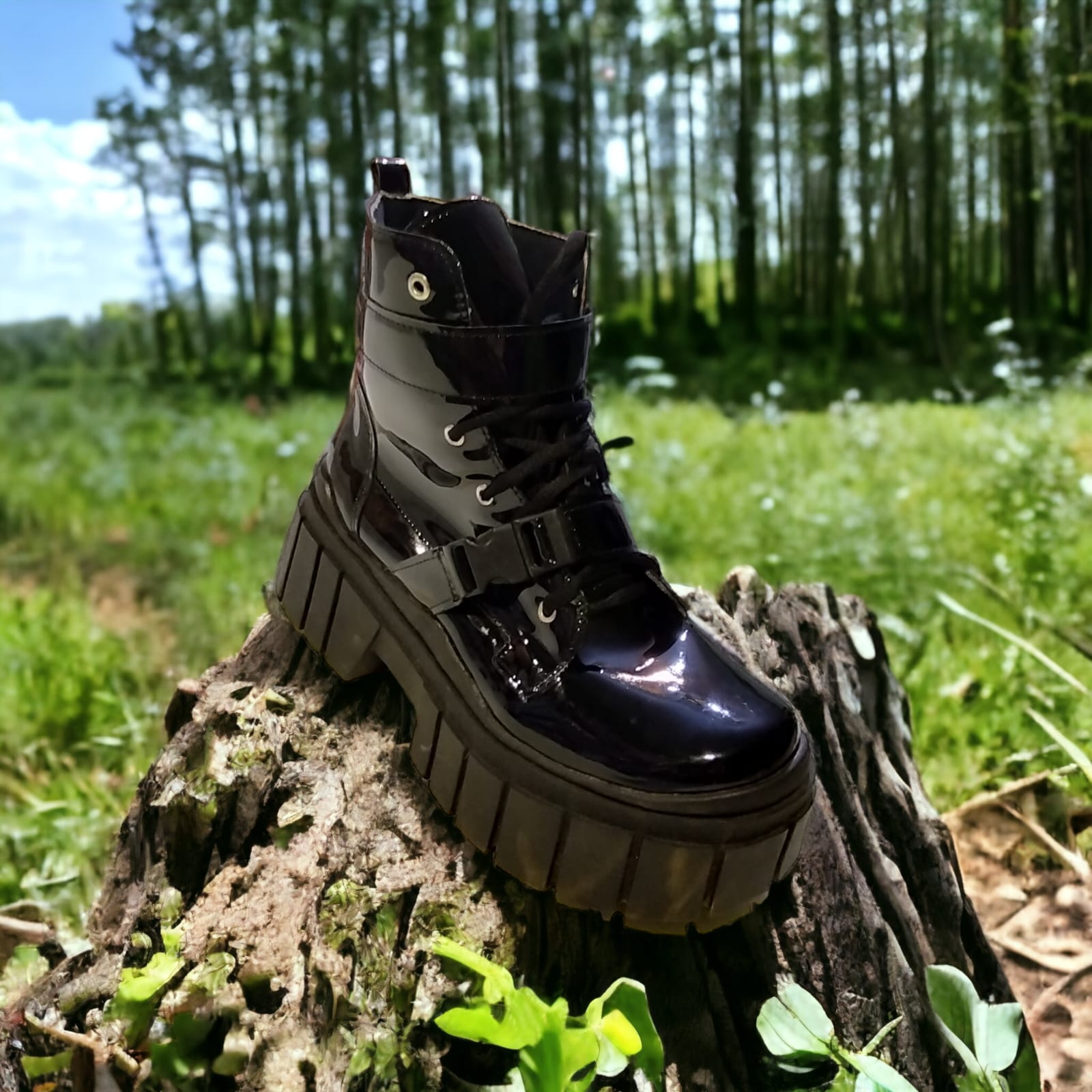 BORCEGOS DE CHAROL, SUELA TRACTOR CON PLATAFORMA Y DETALLES CON HEBILLA. ÚLTIMOS!!!