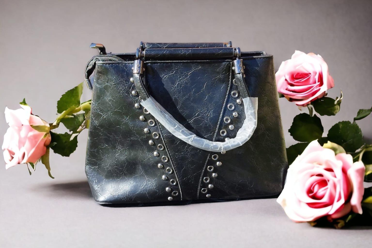 Cartera de cuero en color negro, cuenta con un forrado en su interior y con un bolsillo con cierre por fuera y tres por dentro. Delicados detalles en tachas, cartera de hombro o cartera de mano, excelente calidad. Ideal para cualquier ocasión.