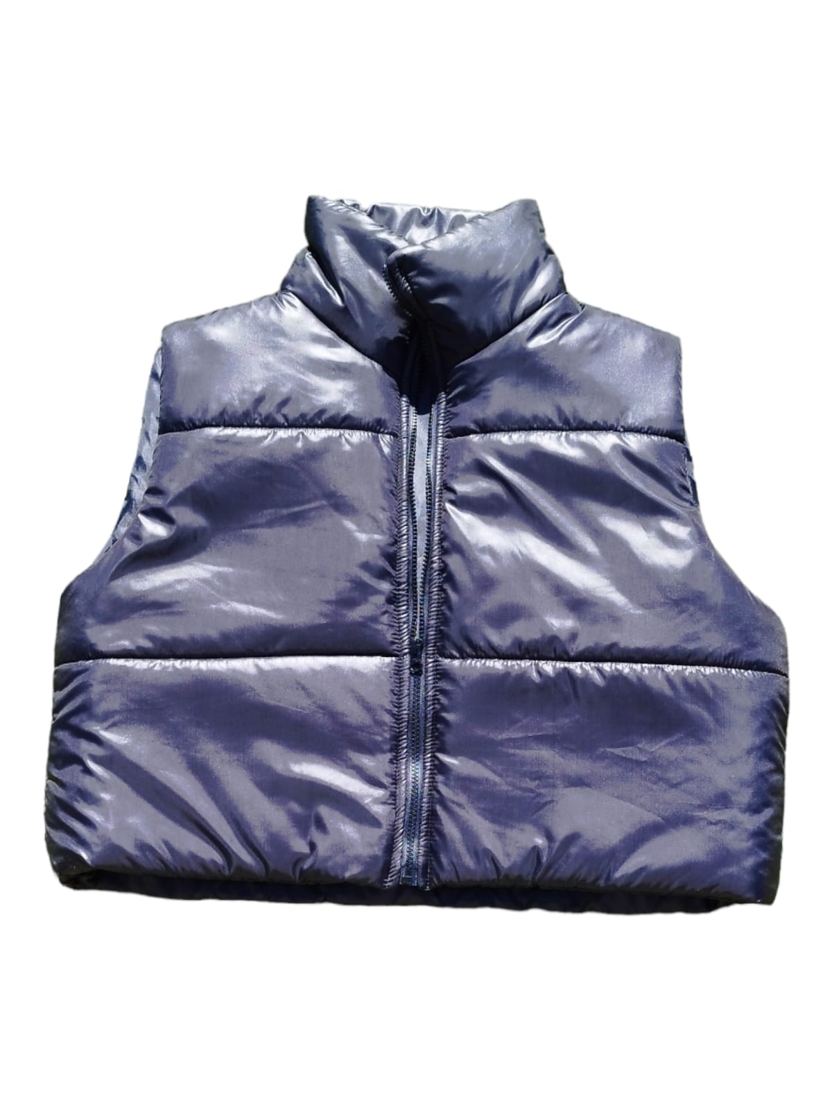 Chaleco puffer corto en color negro, sin bolsillos. Complemento perfecto para cualquier outfit