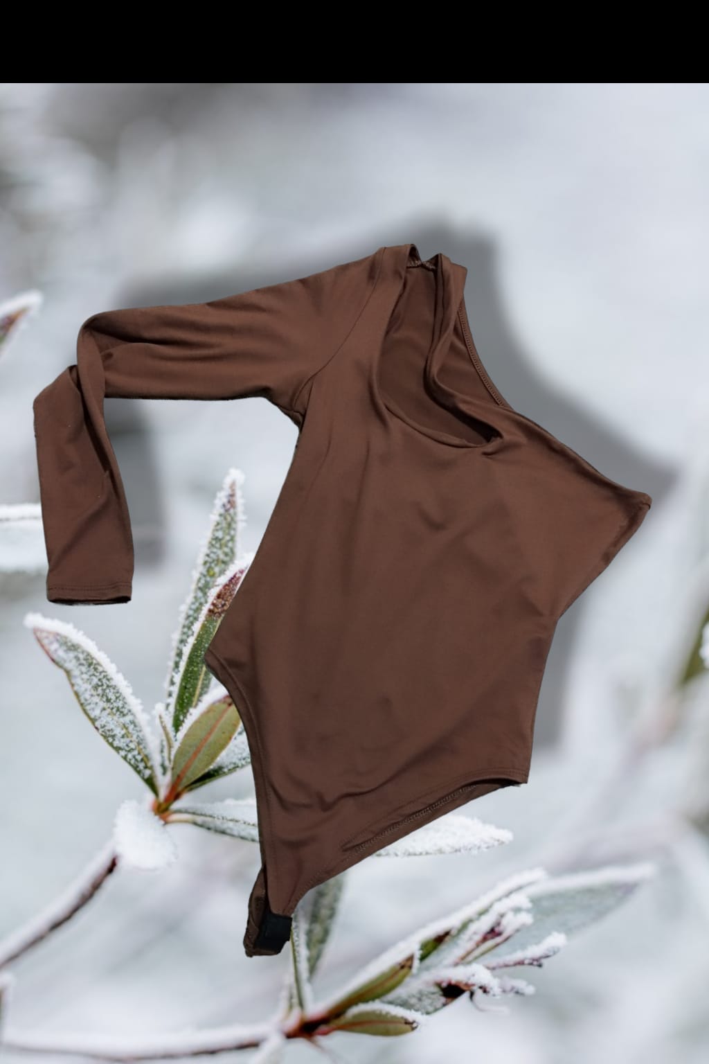 Body Irregular Con Manga Larga Izquierda Y hombro Derecho descubierto. Confeccionado En Algodón Con Lycra. Color habano. Cede hasta talle 2.