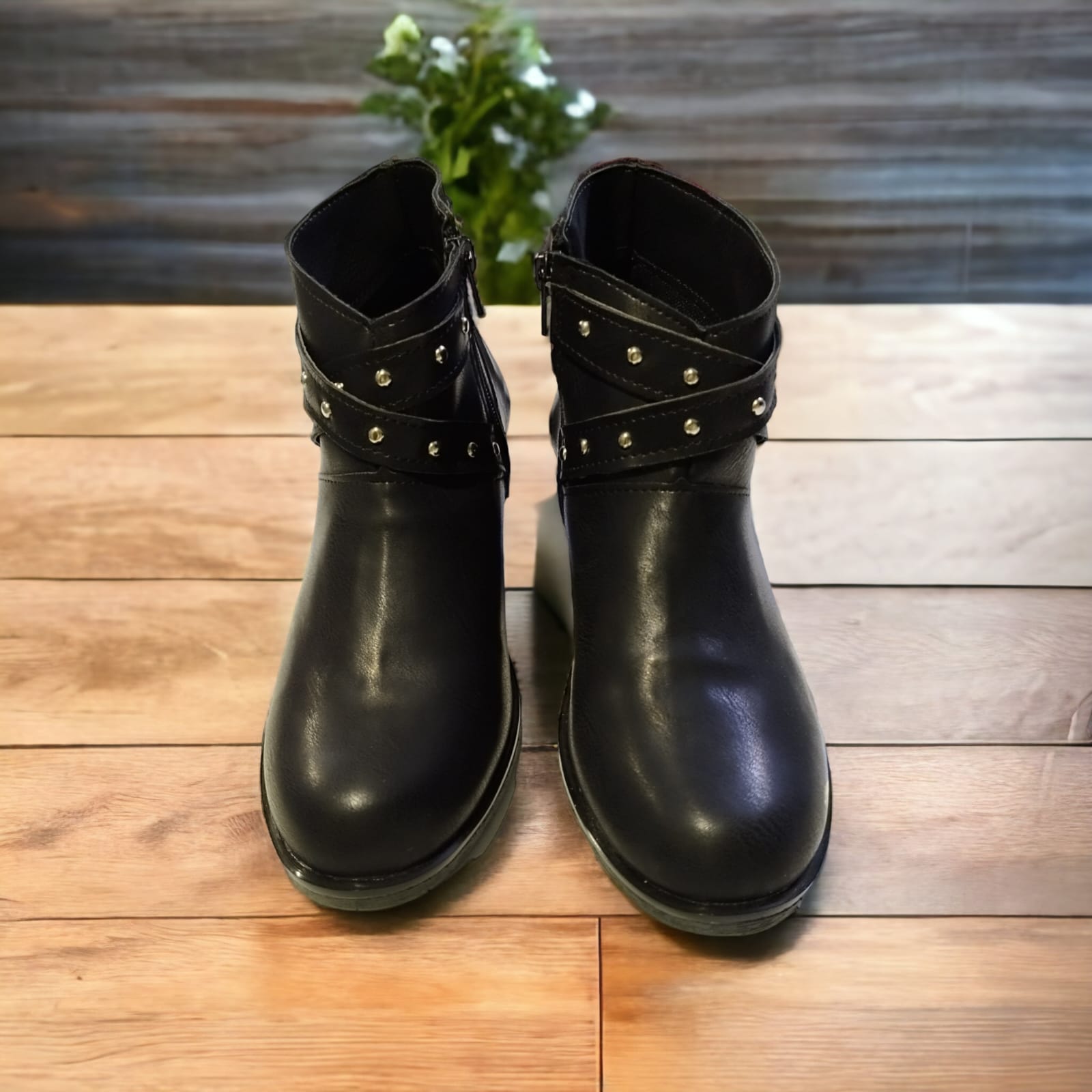 BOTAS CON HEBILLA Y TACHAS. ECO CUERO EXCELENTE CALIDAD.