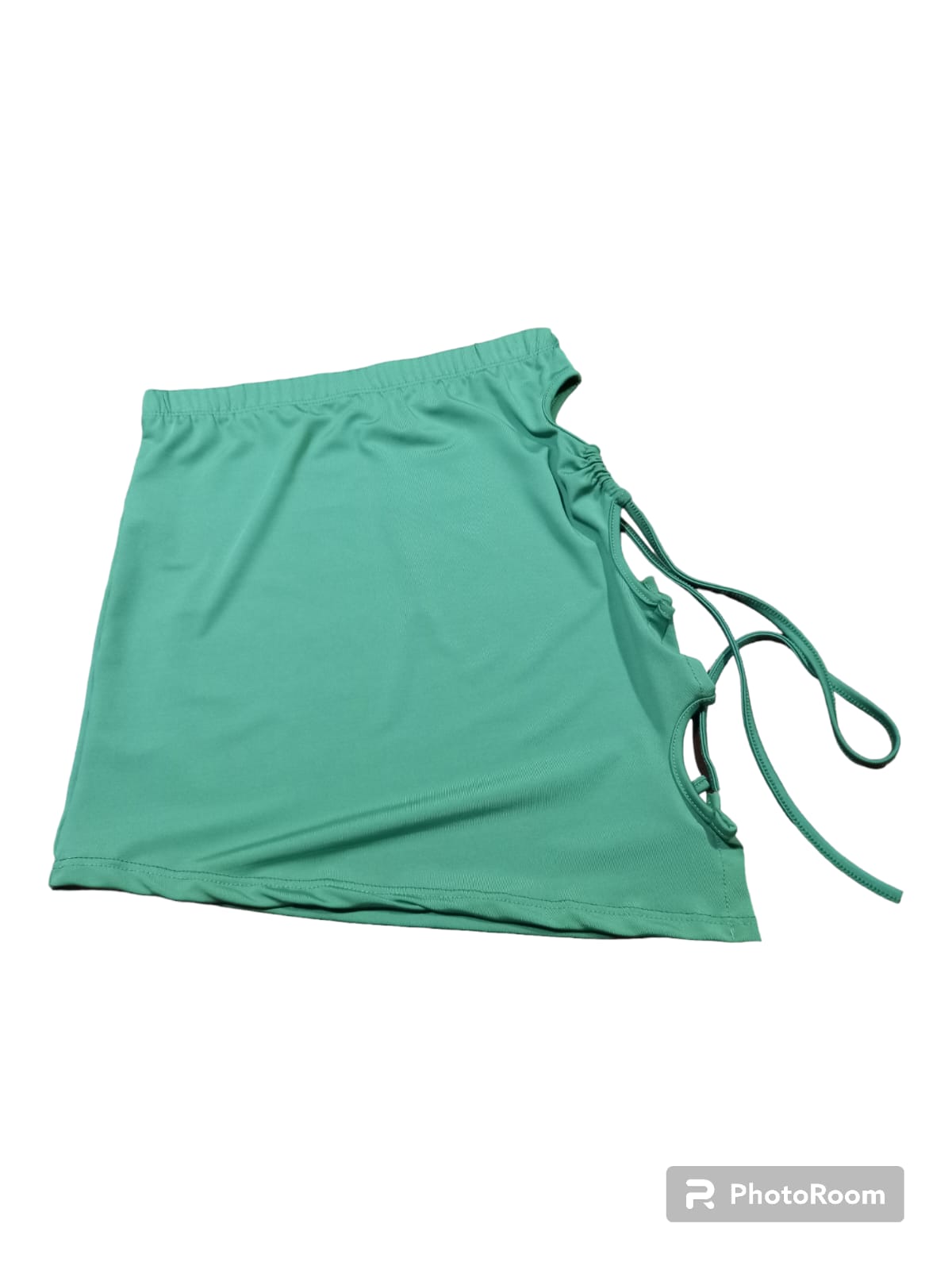 Pollera de lycra en color verde, con detalles abiertos en su costado. Ideal para cualquier ocasión.
