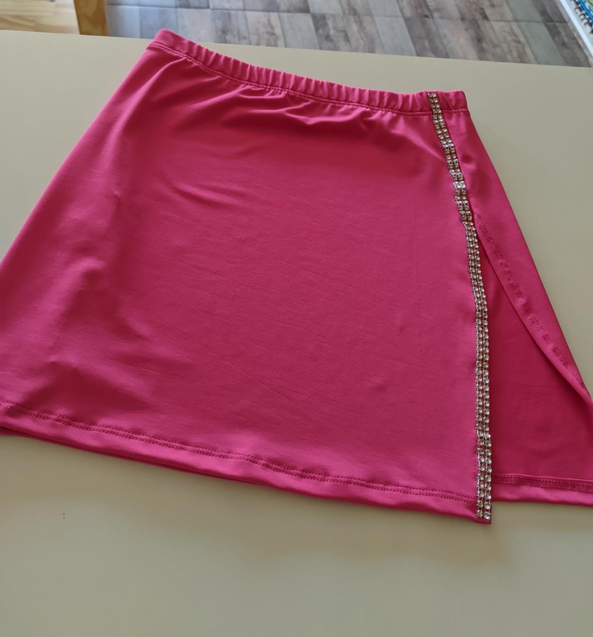 POLLERA DE MICROFIBRA CON DELICADA TIRA DE STRASS AL COSTADO