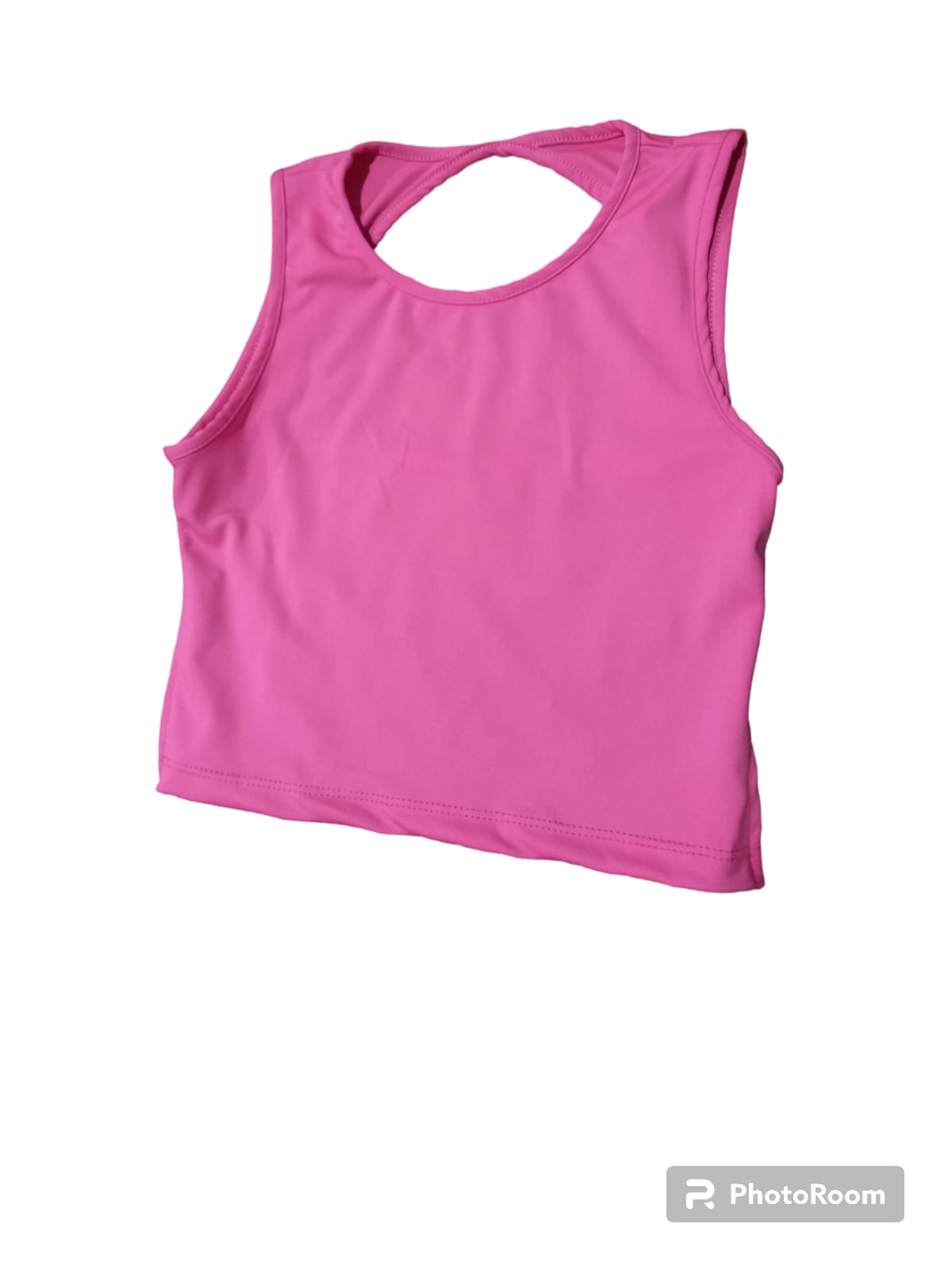 Top fucsia abierto en la espalda con dos tiritas, talle único.
