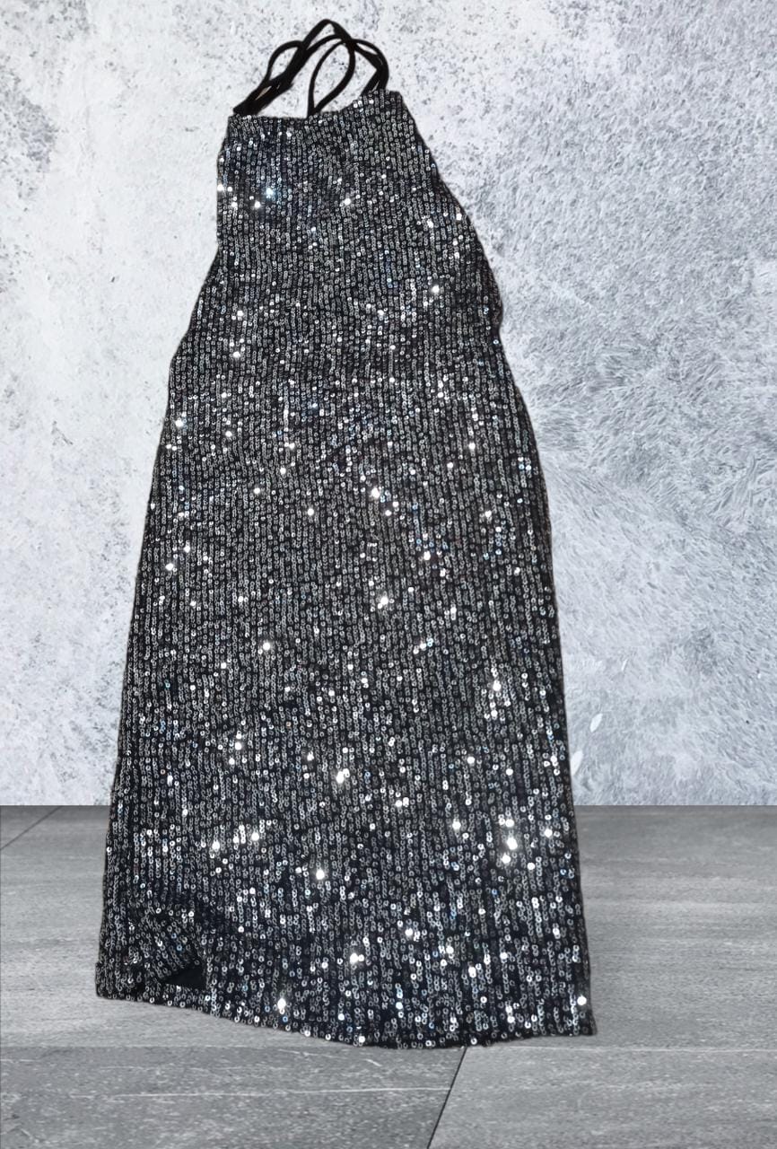 Vestido con lentejuelas plateadas súper sexy con espalda descubierta, talle único.