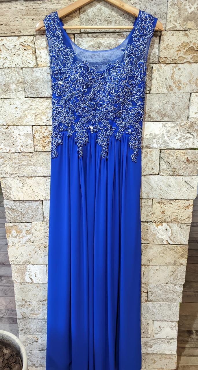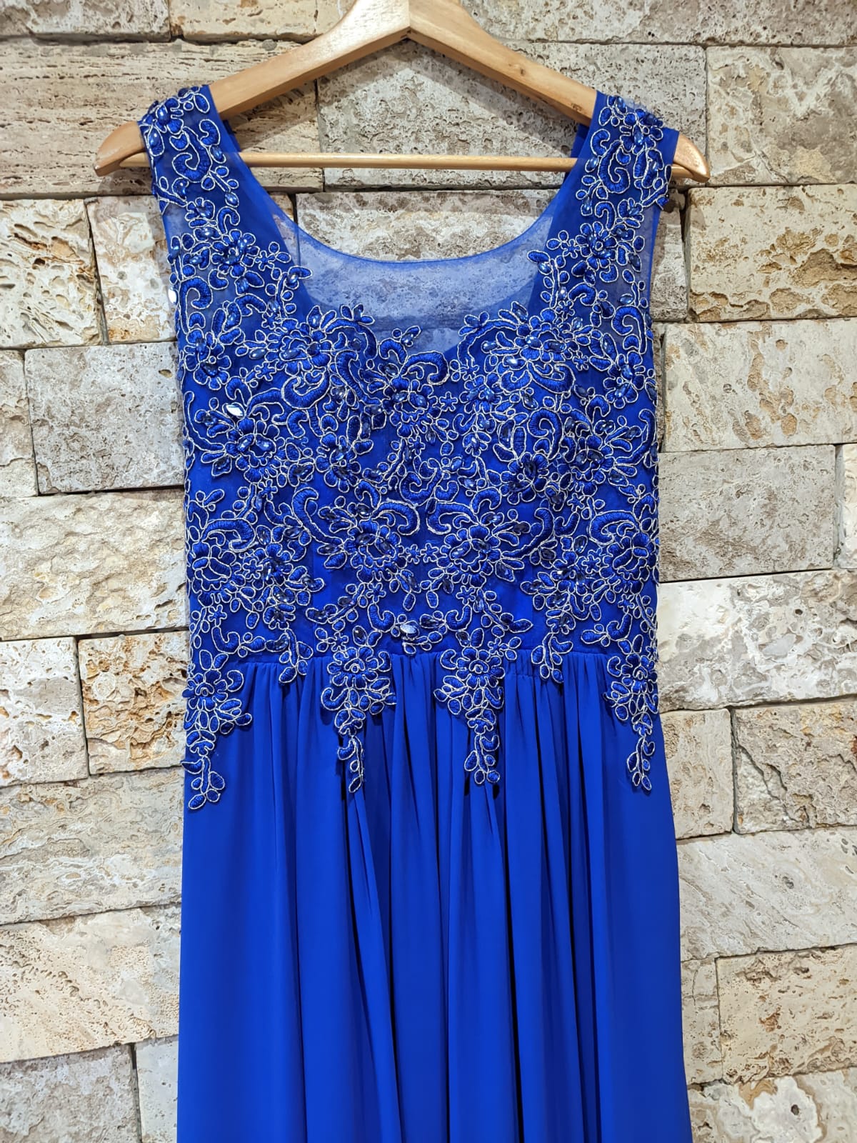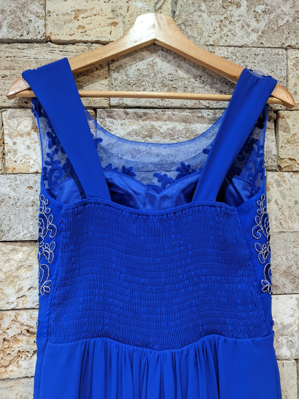 Vestido azul con tul y hermoso detalle de encaje, talle 2.